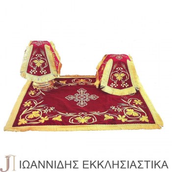 Τα Καλύμματα. Είναι δύο ισομεγέθη, σταυροειδή καλύμματα, με τα οποία καλύπτονται ο Δίσκος και το Ποτήριο κατά την Αγία Προσκομιδή. Το Κάλυμμα του Δίσκου συμβολίζει τα βρεφικά σπάργανα του Χριστού, ενώ το Κάλυμμα του Ποτηρίου, τα εντάφια σπάργανά Του.