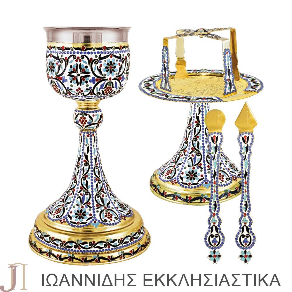 Σετ 5 τεμαχίων το οποίο πελιλαμβάνει το Άγιο Ποτήριο, το Δισκάριο, τον Αστερίσκο, τη Λαβίδα και τη Λόγχη. Τα υλικά κατασκευείς είναι απο χαλκό,ορείχαλκο και ανοξείδωτο ατσάλι.